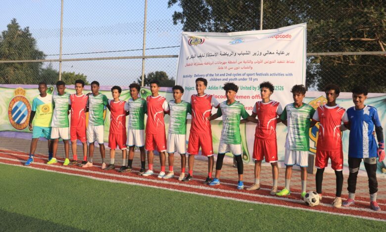 دشنت منظمة هلب كود الإيطالية – مكتب اليمن في ملعب أنس العشبي الكائن في نادي شباب صبرمديرية تبن محافظة لحج مباراة مثيرة بين فريق أكاديمية صبر وفريق الحبيل ضمن فعاليات الدورتين الأولى والثانية من انشطة مهرجان الرياضة للأطفال والشباب دون سن 18 عاما ، برعاية معالي وزير الشباب والرياضة الأستاذ نايف البكري ضمن مشروع تعزيز الإدماج والتغيير الاجتماعي الذي تنفيذه منظمة هلب كود الإيطالية وبتمويل من مؤسسة اديداس من خلال الرياضة .